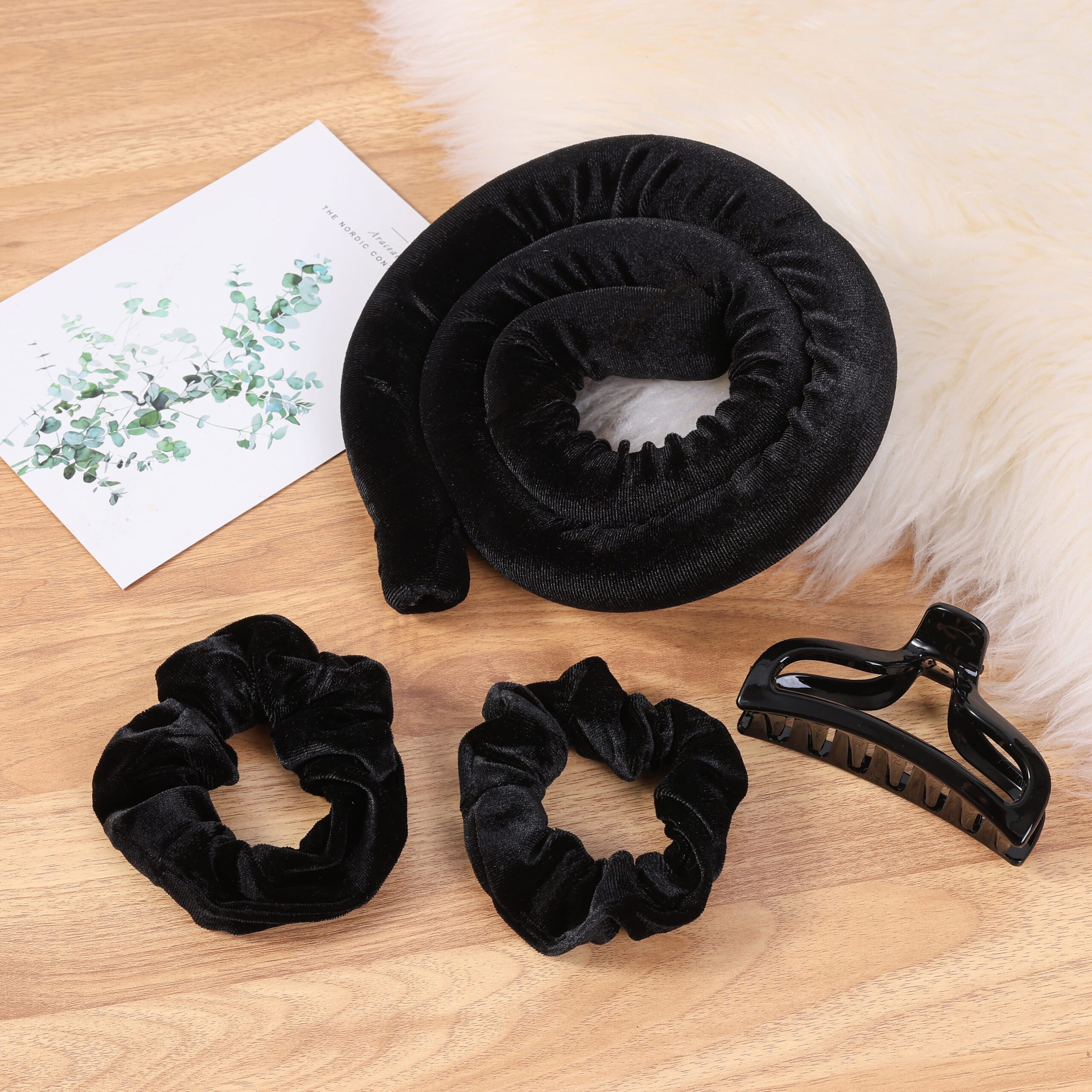 The set includes a roller and 2 scrunchie to securely hold hair in place.