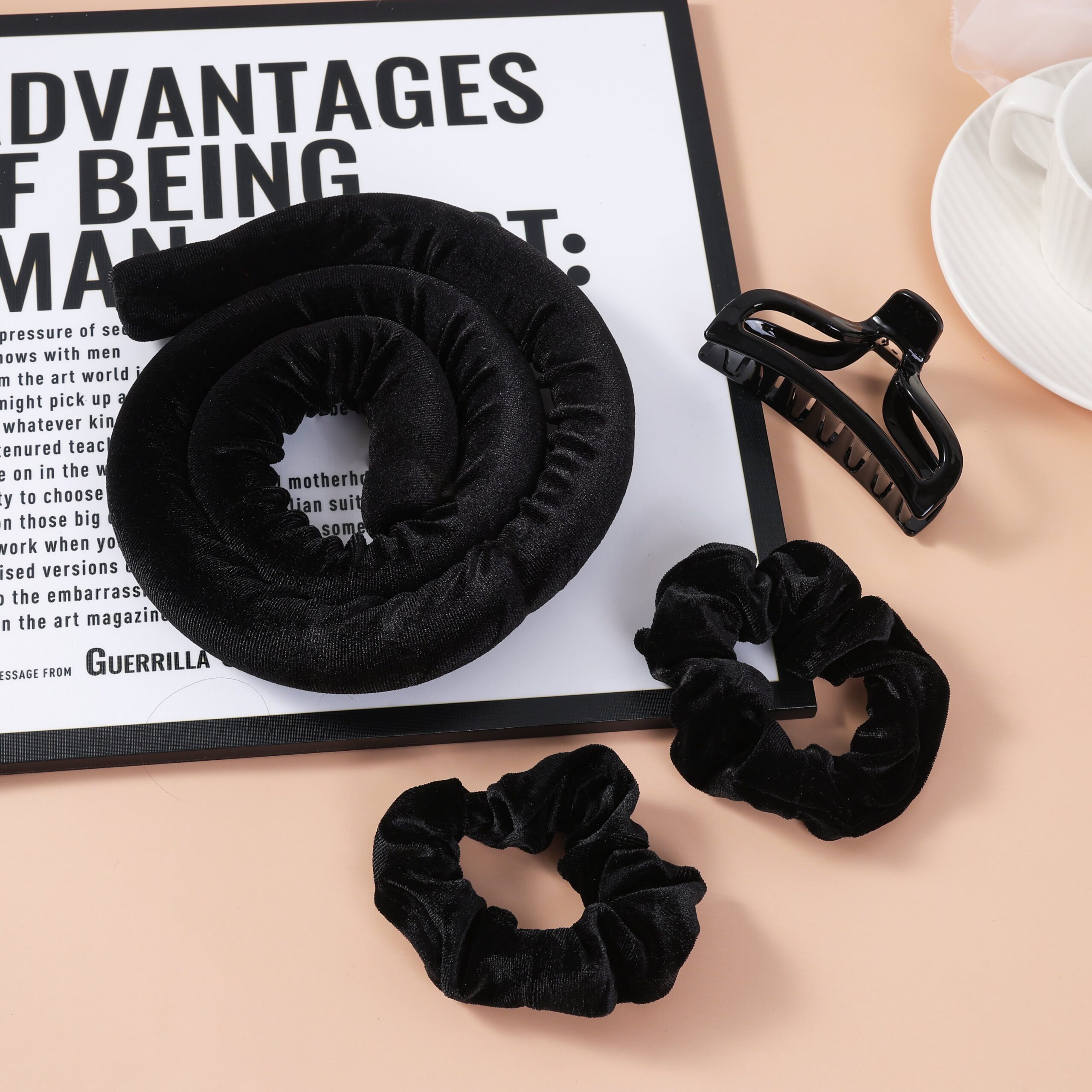 In addition to the roller, you will also find 2 scrunchie and a clip in the kit to ensure the hair is securely held.
