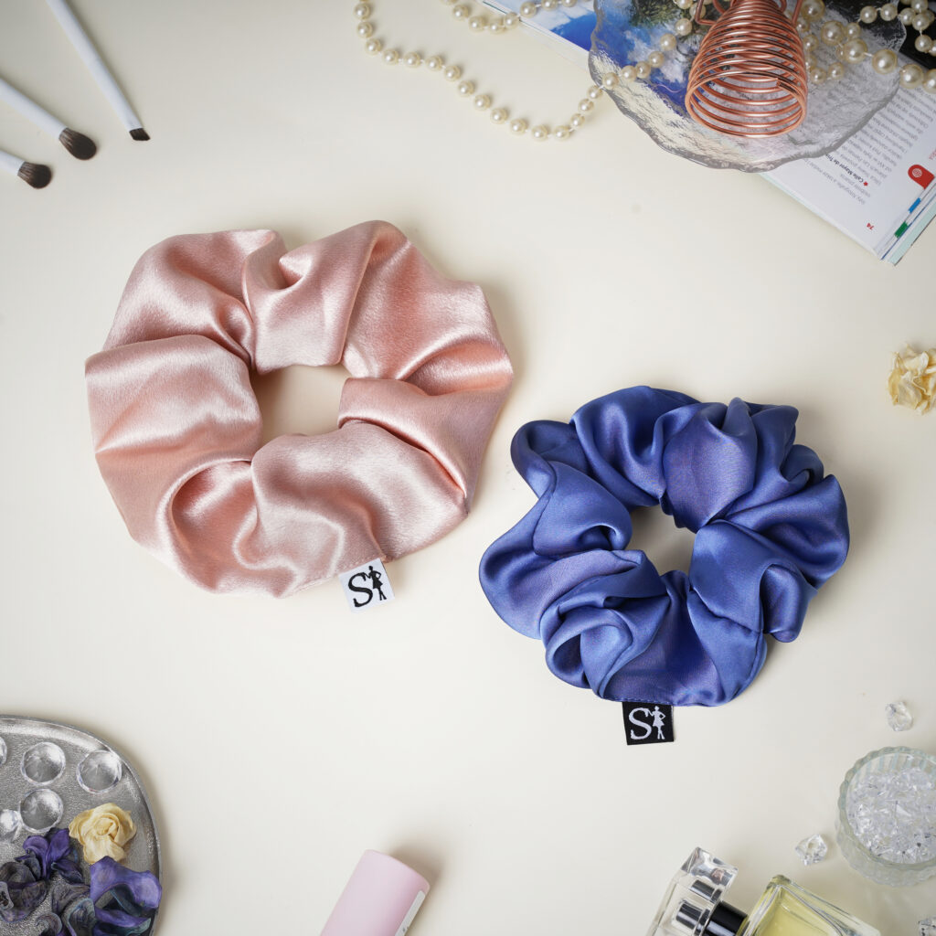 Discover elegance and comfort with the LILU Sister Young scrunchie, the perfect hair elastic made from the highest quality chiffon. This large chiffon scrunchie is available in four beautiful colours: classic Black, subtle Pink, noble Steel Blue and elegant Champagne.