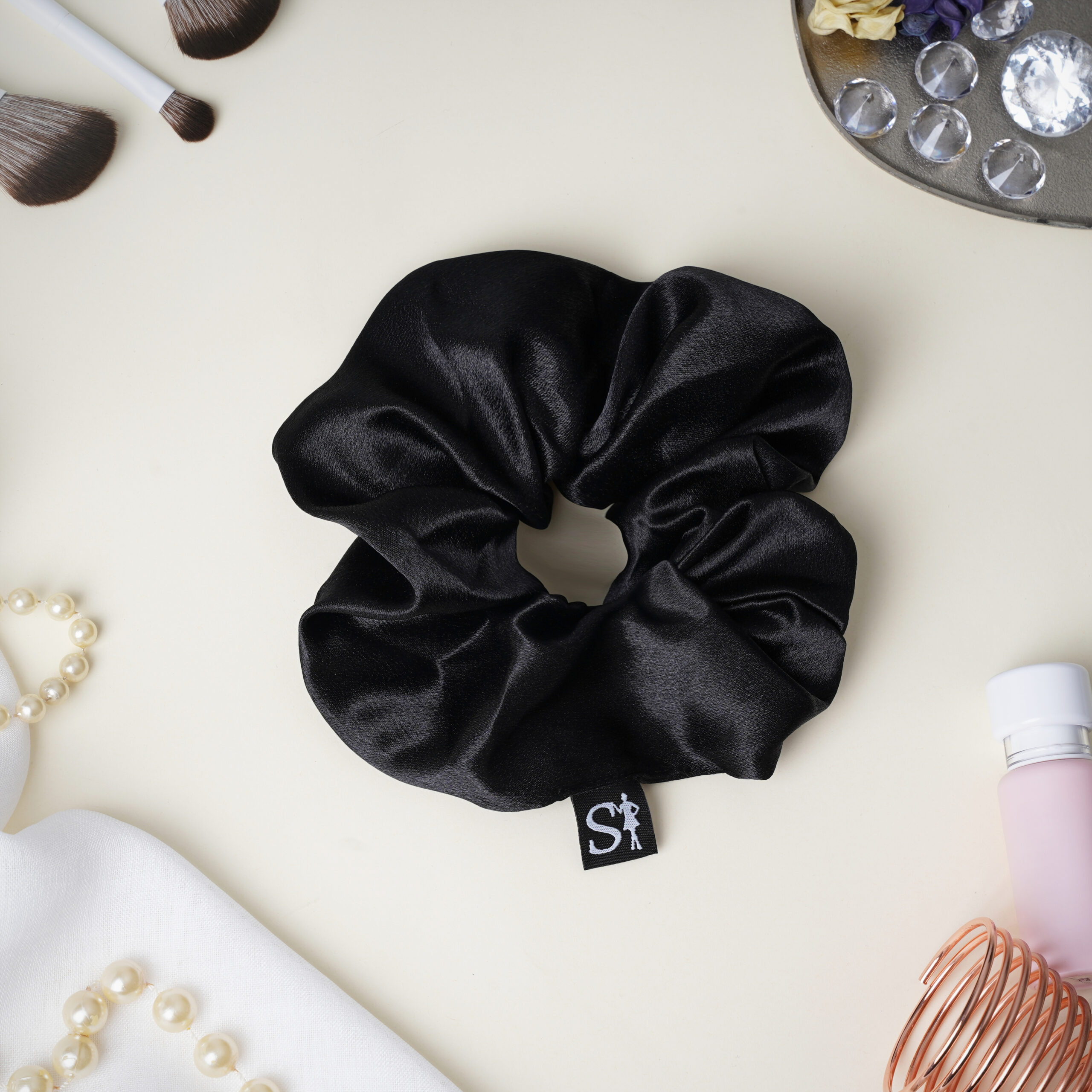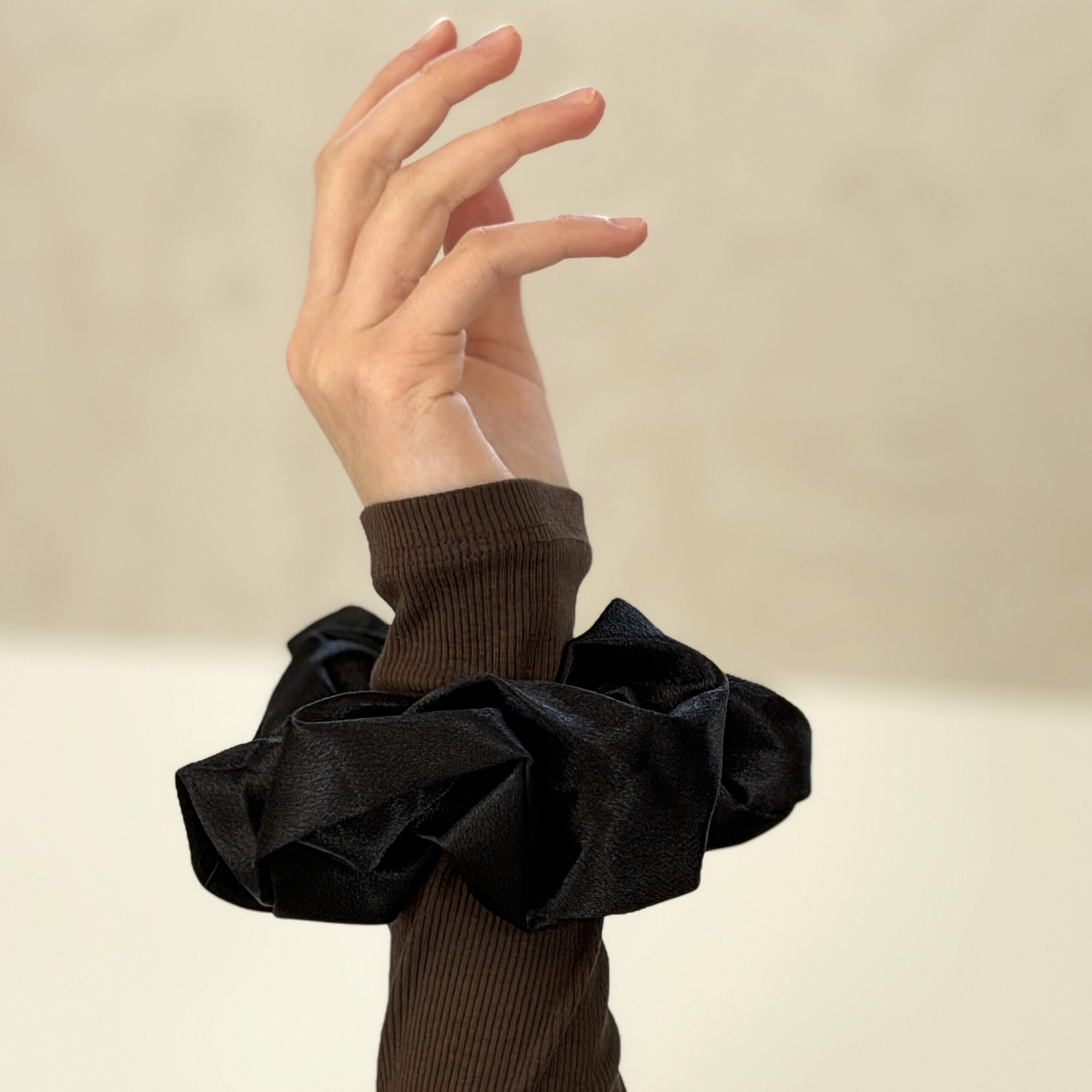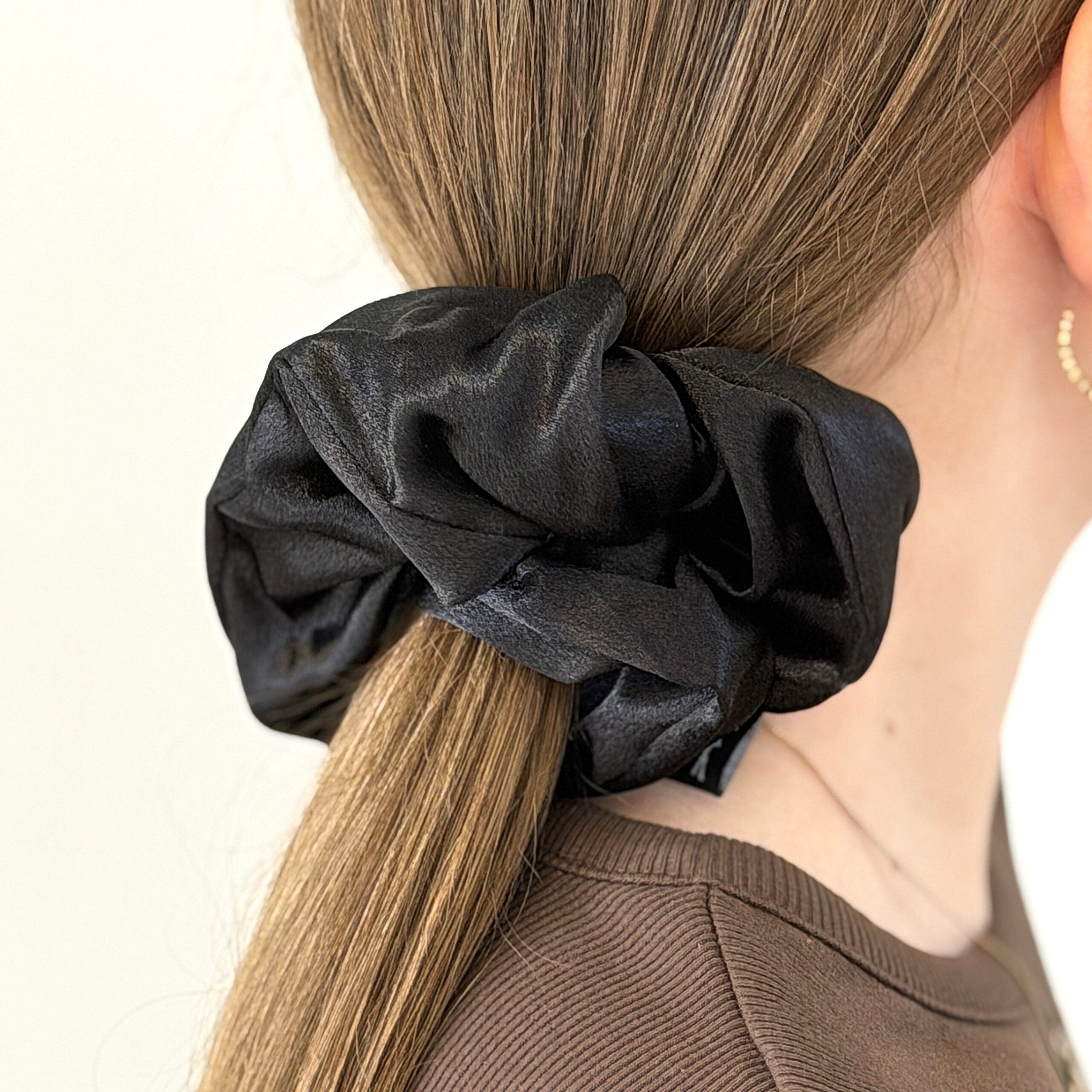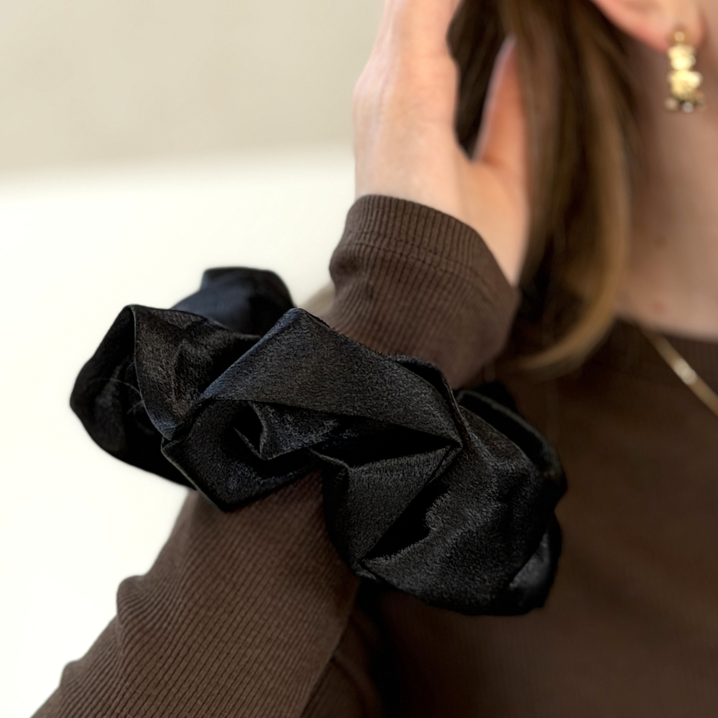 Discover elegance and comfort with the LILU Sister Young scrunchie, the perfect hair elastic made from the highest quality polyester satin. This large satin scrunchie is available in four beautiful colours: classic Black, subtle Pink, noble Steel Blue and elegant Champagne.