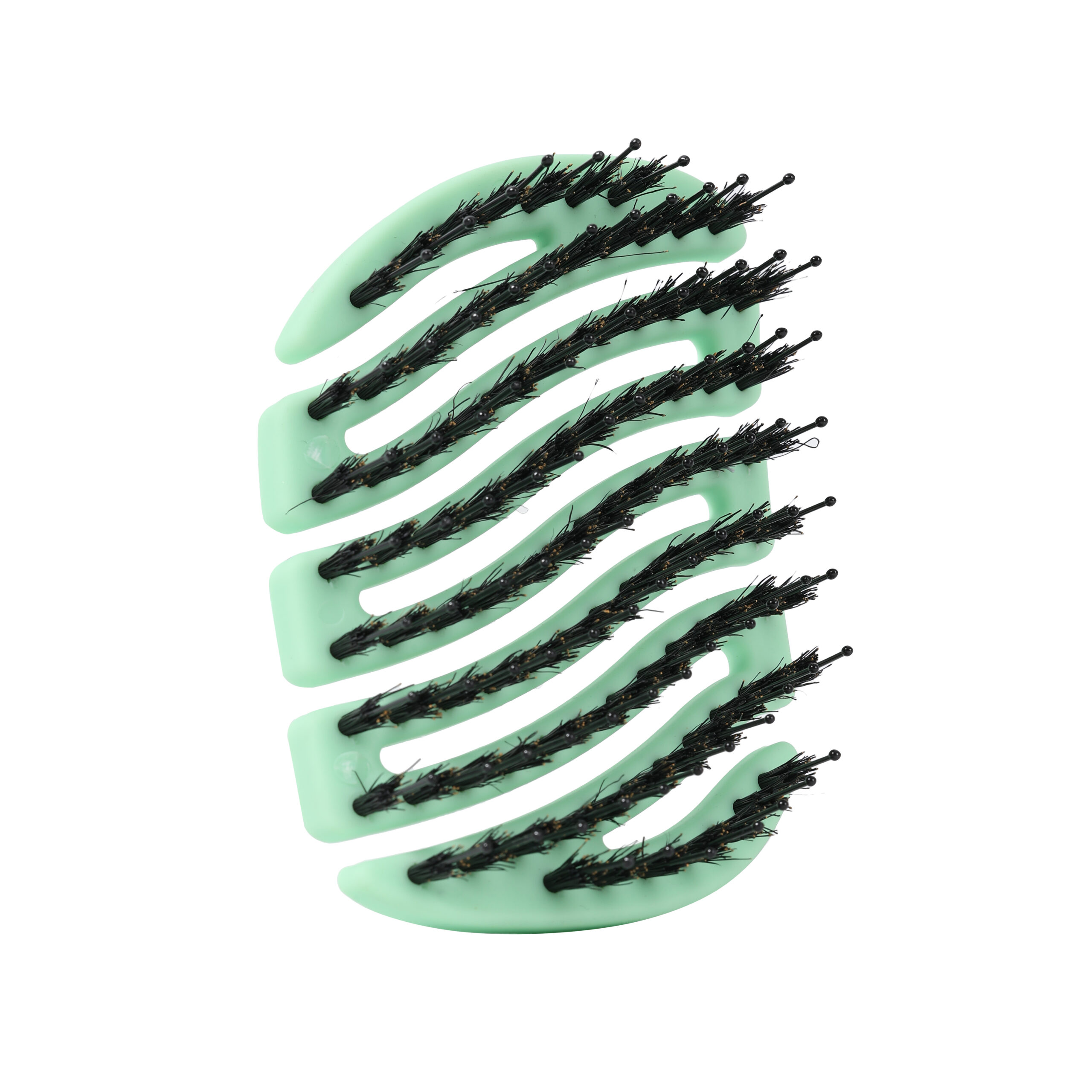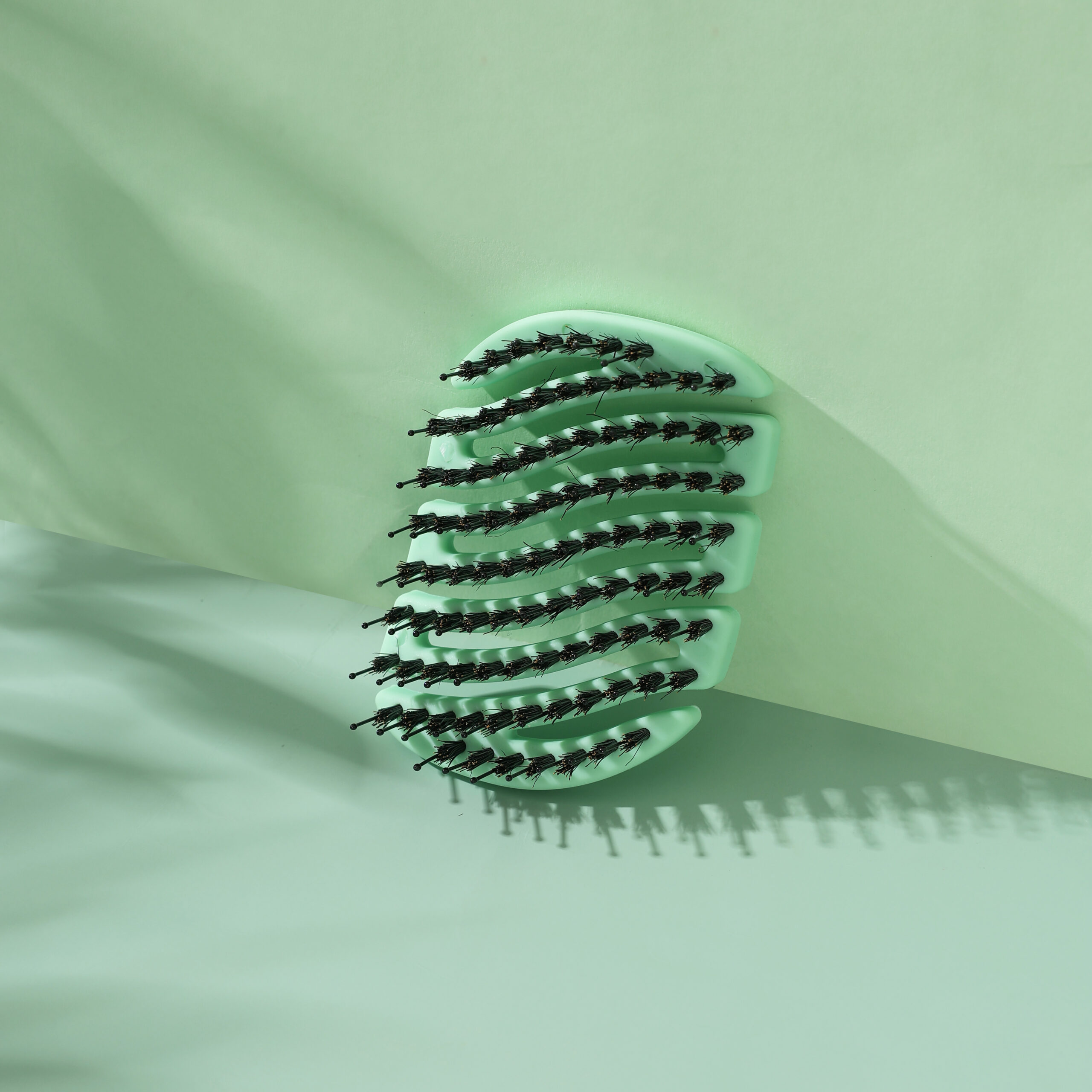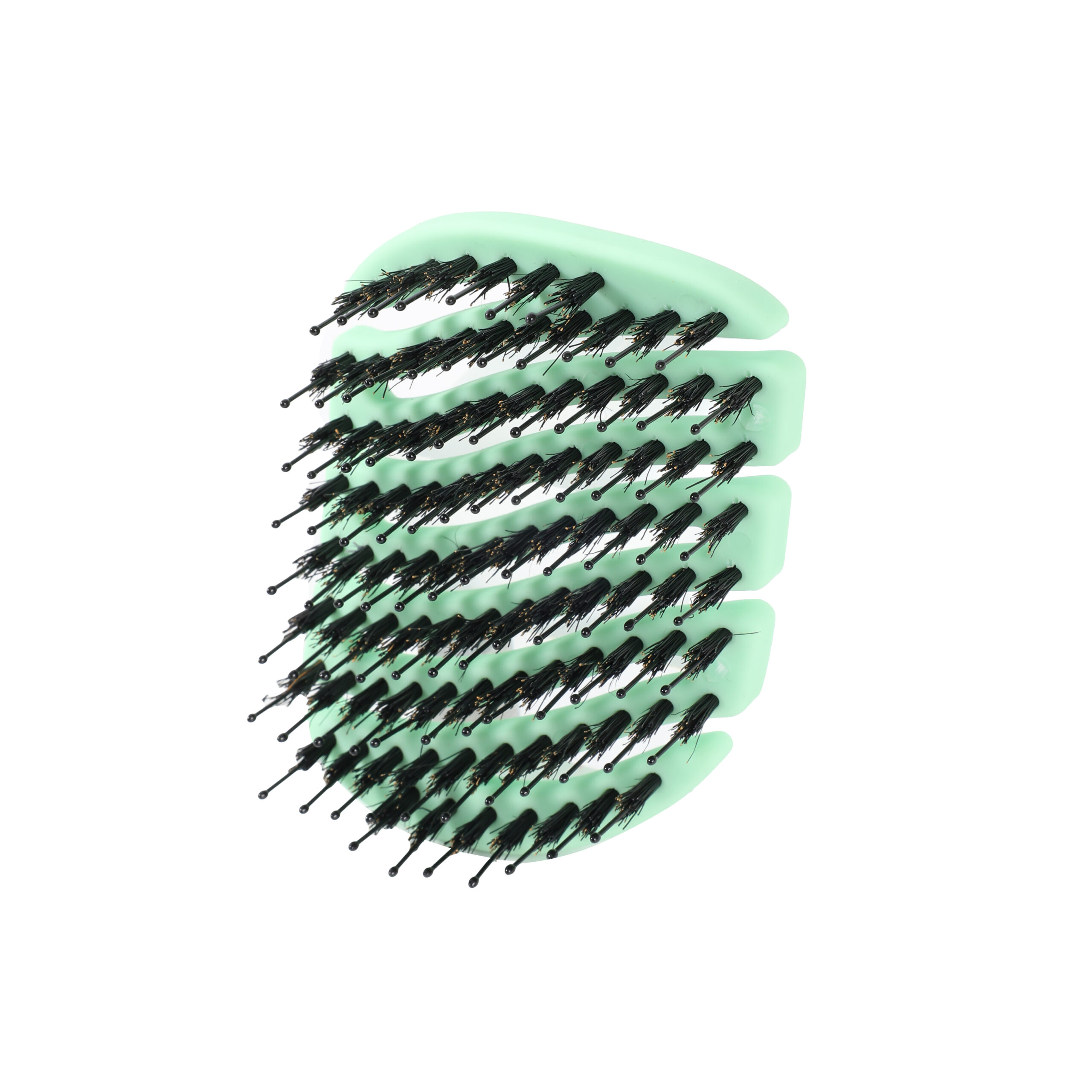 Jej lekka, kompaktowa konstrukcja z naturalnym włosiem dzika i nylonowymi szpilkami zakończonymi masującymi kulkami sprawia, że jest łagodna dla włosów, skutecznie je rozczesując bez zbędnego naciągania.