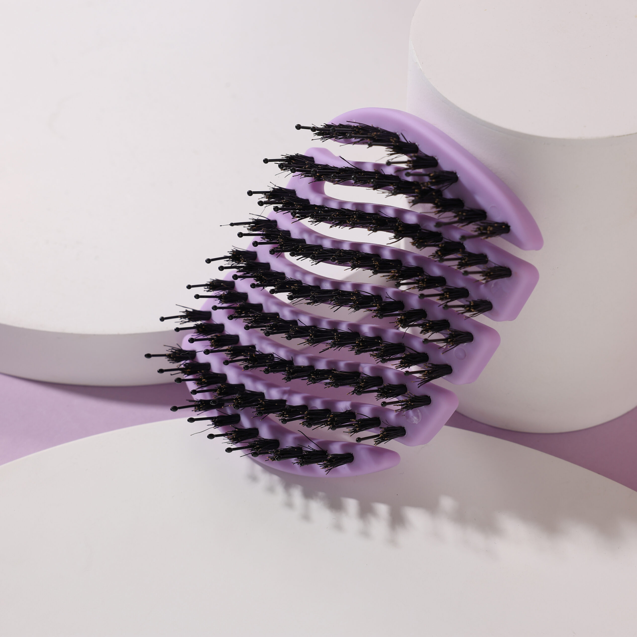 Jej lekka, kompaktowa konstrukcja z naturalnym włosiem dzika i nylonowymi szpilkami zakończonymi masującymi kulkami sprawia, że jest łagodna dla włosów, skutecznie je rozczesując bez zbędnego naciągania.