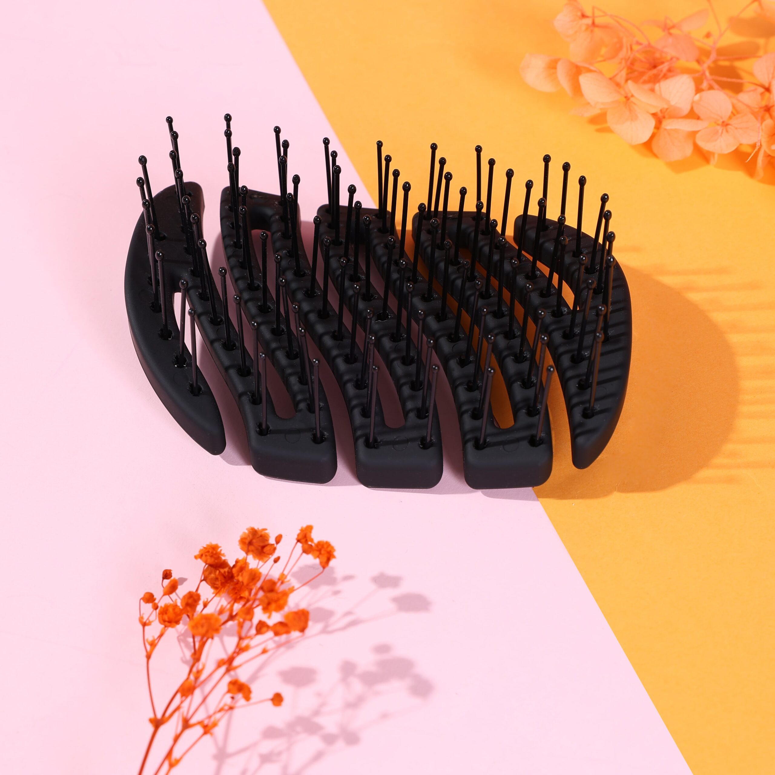 Jej lekka, kompaktowa konstrukcja nylonowymi szpilkami zakończonymi masującymi kulkami sprawia, że jest łagodna dla włosów, skutecznie je rozczesując bez zbędnego naciągania.