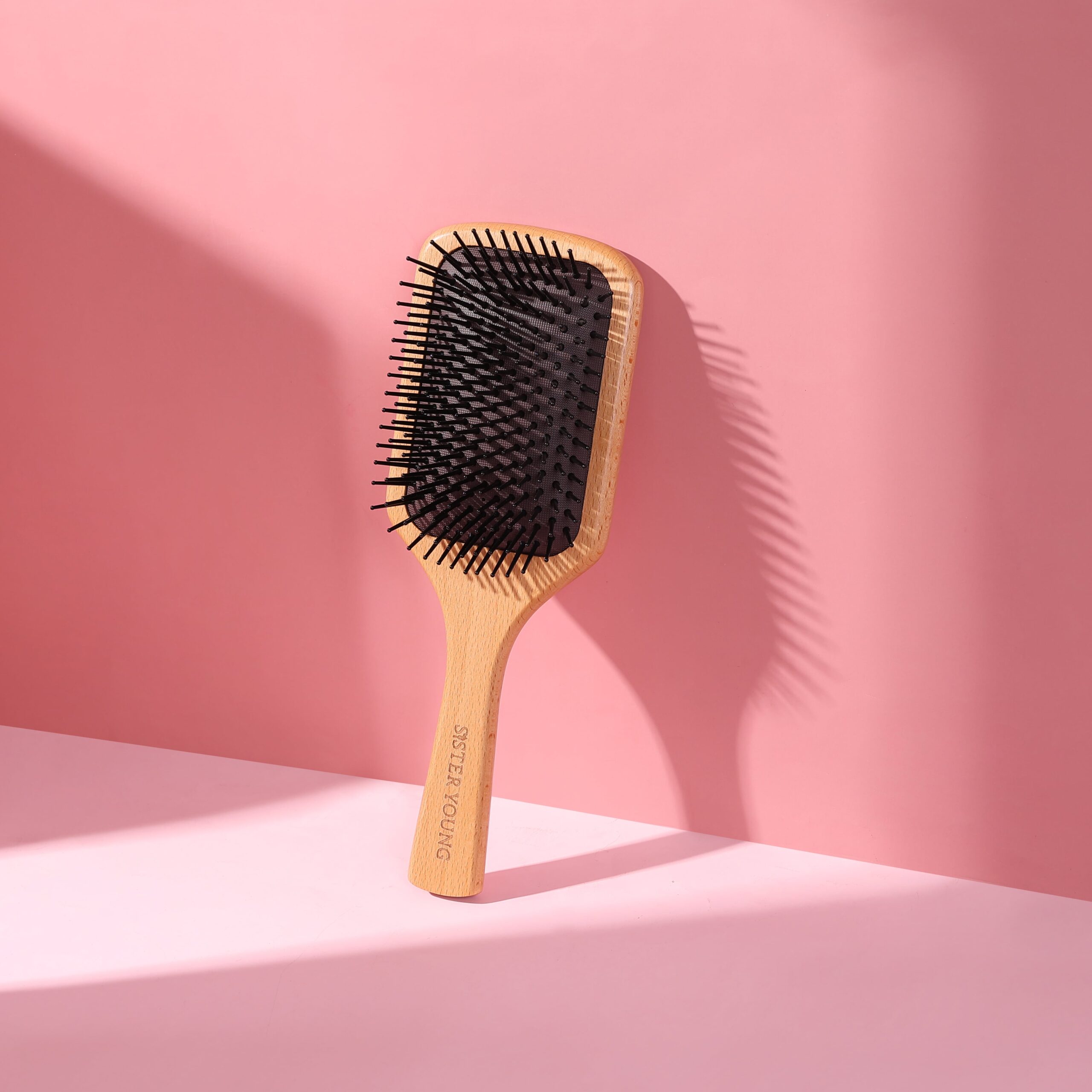 Drewniana szczotka wiosłowa typu paddle brush NAYA Sister Young do rozczesywania, suszenia i prostowania wszelkich rodzajów włosów, zwłaszcza tych grubych i gęstych. Wykonana została z włosia nylonowego oraz naturalnego drewna bukowego. Doskonale wygładza pasma i pozostawia je zdrowe i błyszczące.