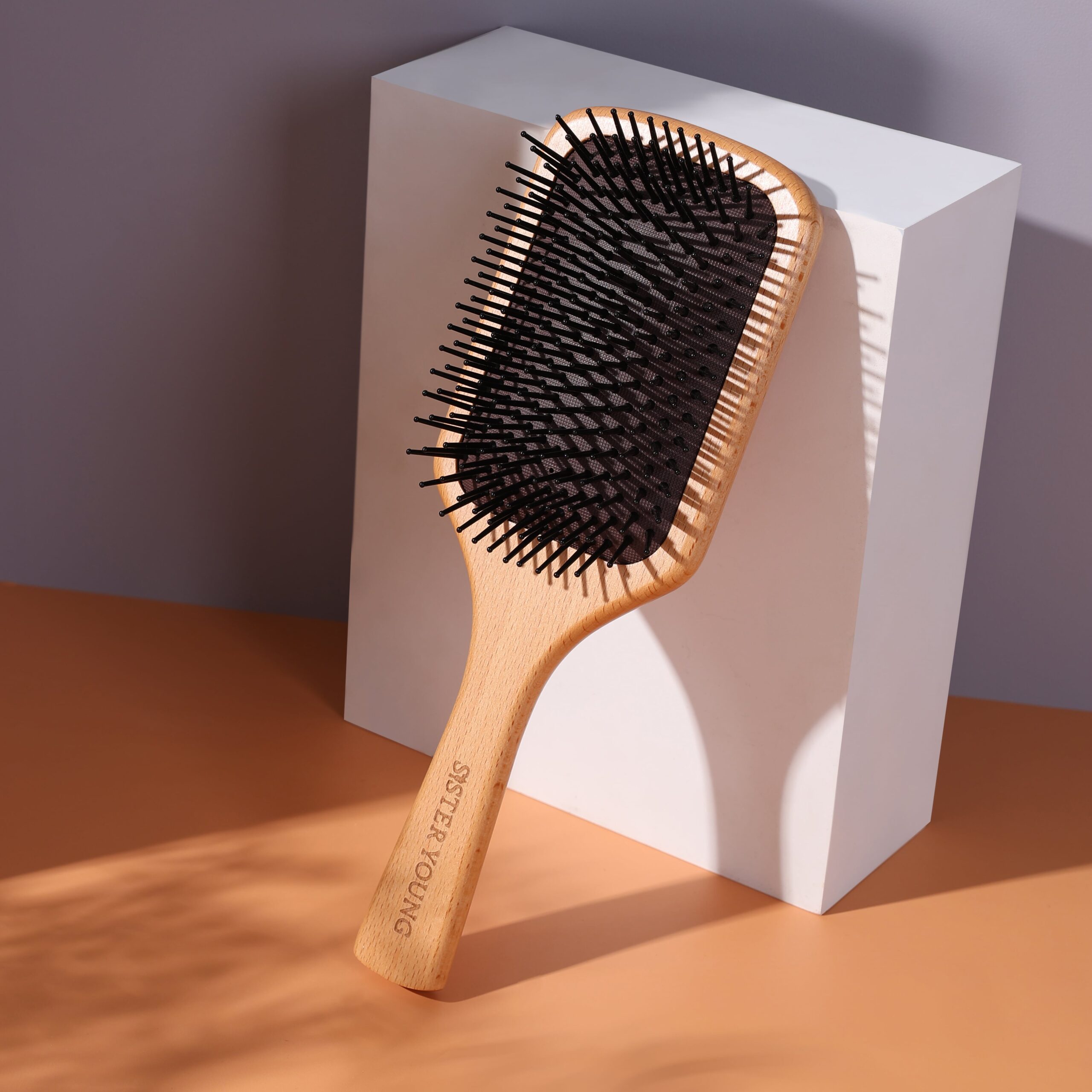 Solidna konstrukcja z drewna bukowego jest odporna na uszkodzenia, a ergonomiczny uchwyt zapewnia komfortowe użytkowanie. Delikatna poduszka wyposażona w kolce z tworzywa sztucznego, o zaokrąglonych końcach, oferuje przyjemny masaż skóry głowy, poprawiając jednocześnie krążenie krwi oraz pobudzając włosy do szybszego wzrostu. Szczotka precyzyjnie rozczesuje włosy, nie plącze ich ani nie elektryzuje. Bez szarpania czy wyrywania, chroni strukturę włosa i skutecznie zapobiega puszeniu.