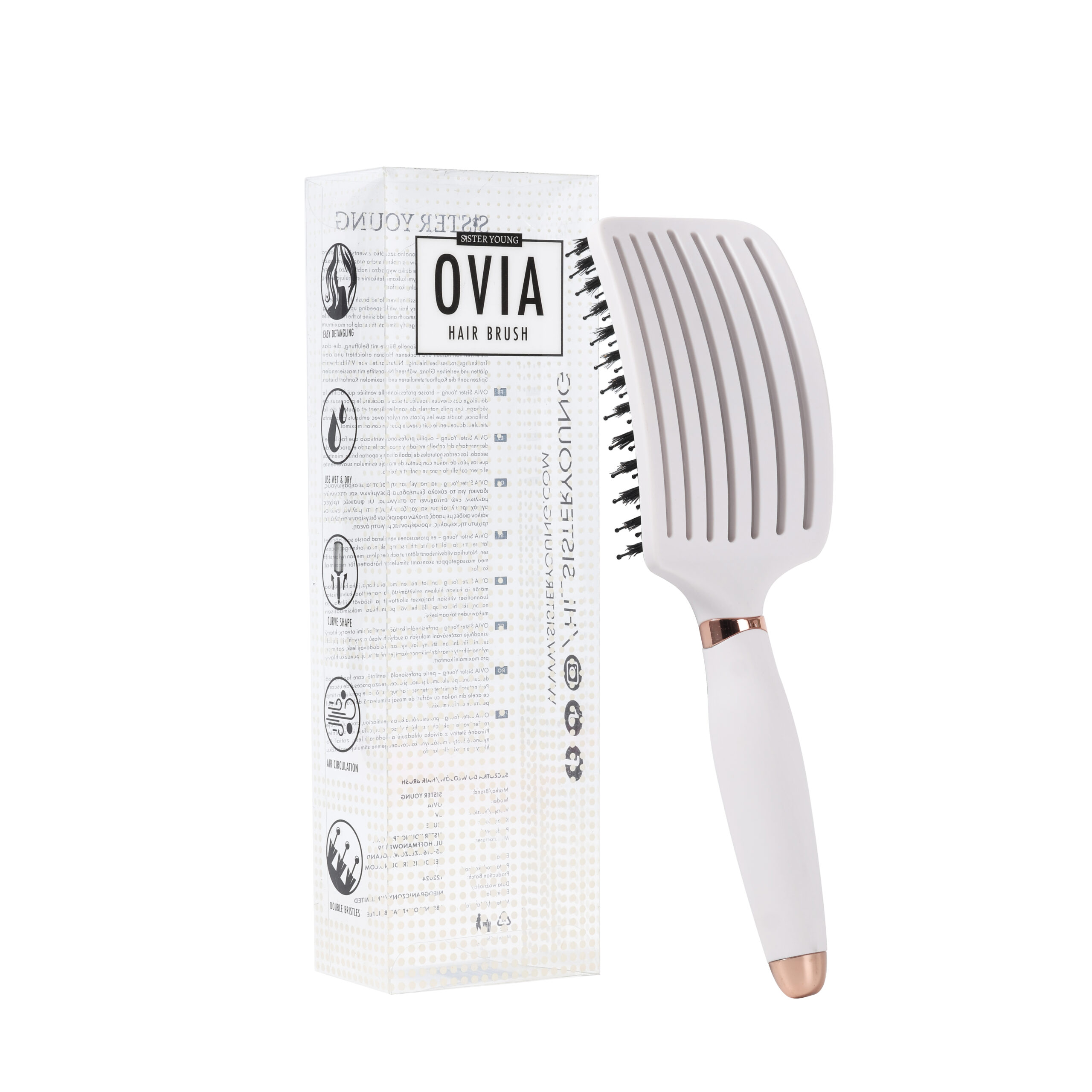 OVIA Sister Young – zakrzywiona szczotka z wentylacją do rozczesywania i szybszego suszenia wszystkich rodzajów włosów, na mokro i na sucho. Szukasz idealnej szczotki dla swoich włosów? Oto szczotka OVIA – wyjątkowa propozycja dla kobiet, które pragną wspaniałego wyglądu i zdrowych włosów.